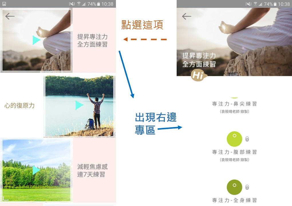 如果您想要幫助自己更好,做專業的專注力訓練,鼓勵您使用Hi Mind 單元由正念減壓名師與情緒管理老師陪伴您訓練專注力&放鬆技巧。