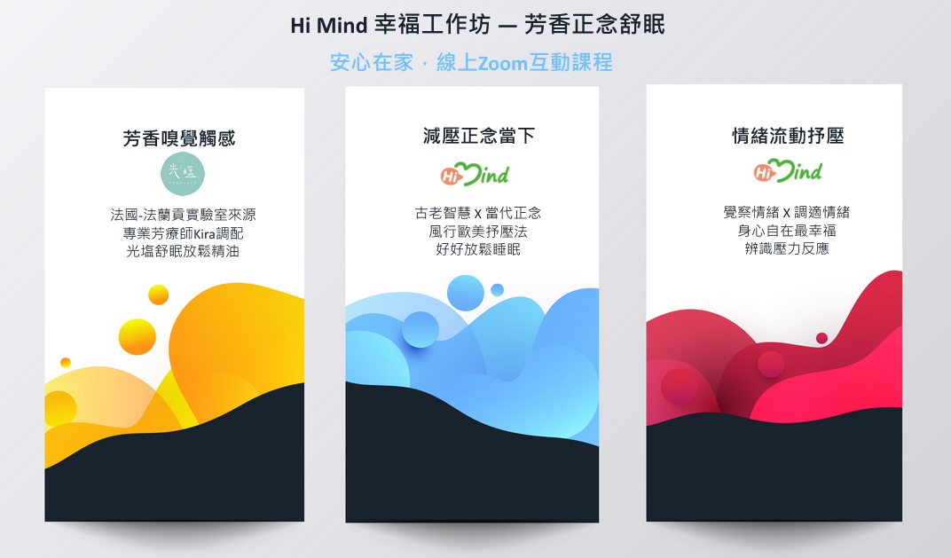 - 您的聲音,Hi Mind 聽到了,推出「安心在家,線上Zoom 4周互動課程」,將整合三大元素,希望給您最好的學習照顧: