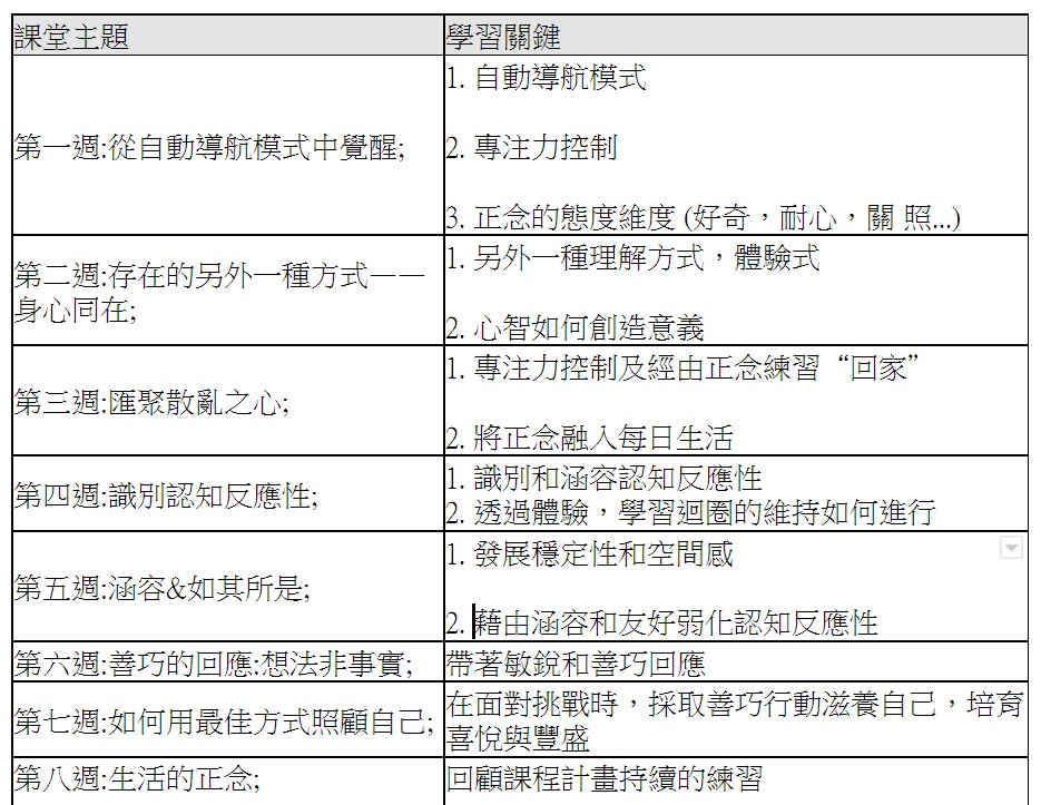 ◤ 正念認知生活八週課程(MBCT for Life)特色