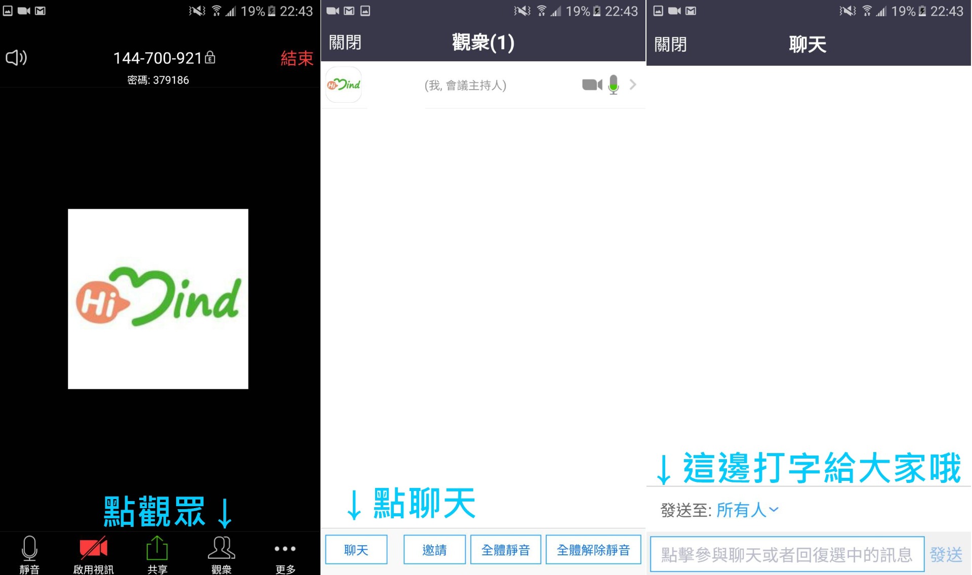 #問題4 - 進入線上會議室後,要怎麼跟其他人文字聊天?