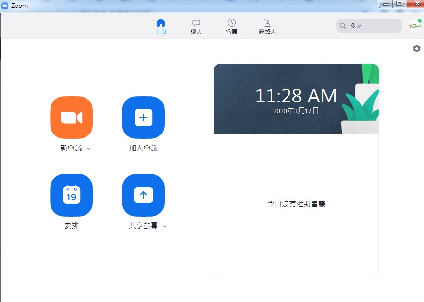 - PC電腦版用戶,下載Zoom ,即可在Windows電腦安裝。安裝好並登入之後(推薦可以使用Facebook登入,比較快),您會看到這樣的畫面: