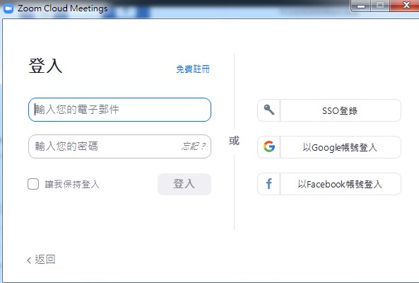 [手機版 ] 您可以選擇『登入』,按底部下方的Facebook帳號登入,比較方便快速, 也可以註冊Zoom帳號密碼登入,記得去Email收信驗證信箱,就可以順利登入囉!